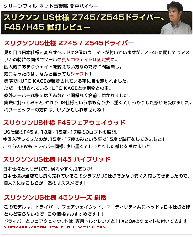 スリクソン Z F45 フェアウェイウッド[US] 三菱 KUROKAGE BLACK HBP60 シャフト 【あす楽対応】