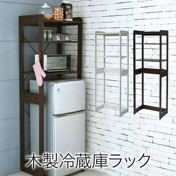 冷蔵庫ラック 幅60 ラック 上 収納 棚 レンジ 木製 おしゃれ フック付き 可動棚 冷蔵庫用 トースターラック 調味料 キッチン キッチン収納 ホワイト ブラウン キッチンラック 台所 隙間収納 すきま収納 冷蔵庫上 一人暮らし 新生活